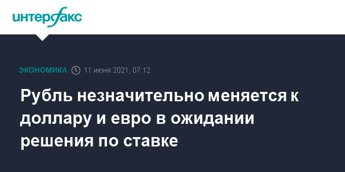 По мнению экспертов «Интерфакс-ЦЭА», незначительные изменения рубля к доллару и евро на старте торгов 11 июня вызваны ожиданиями игроков рынка заседания совета директоров Банка России по денежно-кредитной политике, которое состоится в пятницу. Резкое ускорение инфляции в РФ не оставило у аналитиков сомнений в повышении ставки ЦБ сразу на 50 базисных пунктов. Консенсус среди экспертов по ужесточению денежно-кредитной политики (ДКП) именно таким шагом был достигнут впервые в истории инфляционного таргетирования.