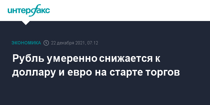Москва. 22 декабря. INTERFAX.RU — Доллар США и евро умеренно растут на «Московской бирже» в среду утром, рубль слабеет к бивалютной корзине из-за наметившегося ухудшения ситуации на мировых рынках капитала.
