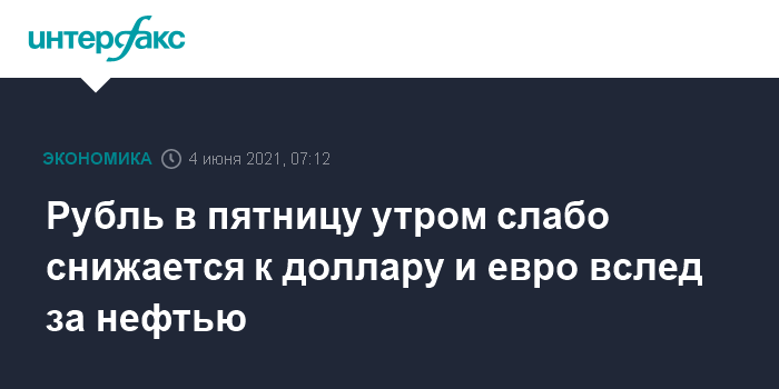 По мнению экспертов «Интерфакс-ЦЭА», рубль слабо снижается к доллару и евро на старте торгов 18 июня в связи с отрицательной динамикой котировок нефти и снижением «аппетита к риску». Днем ранее рубль сопротивлялся давлению нефти и рос за счет ослабления геополитических рисков после переговоров глав РФ и США Владимира Путина и Джозефа Байдена.
