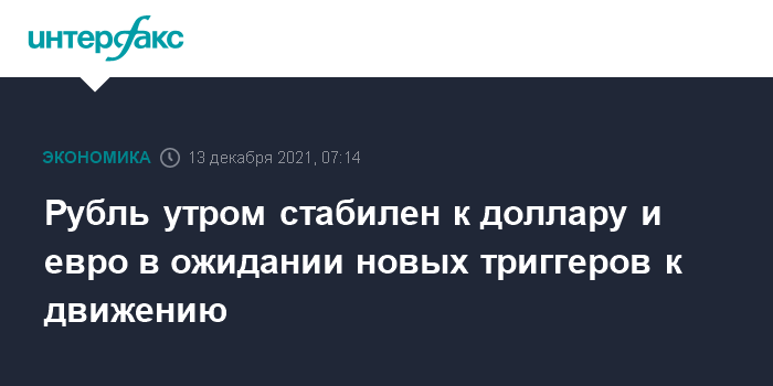 По мнению экспертов «Интерфакс-ЦЭА», незначительные изменения рубля к доллару и евро на старте торгов 13 декабря обусловлены ожиданиями новых триггеров к движению. Прежде всего, инвесторы находятся в преддверии заседаний на неделе ключевых центробанков, в том числе российского, на котором ожидается рассмотрение вопроса об очередном повышении ключевой ставки.