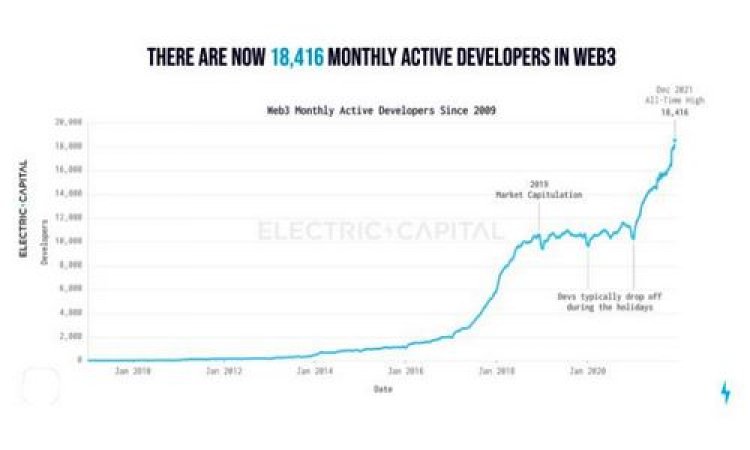 2021 год стал перспективным для первого уровня, DeFi и всей блокчейн-экосистемы. Несколько ключевых показателей:в 2021 году был достигнут исторический максимум: более 18 тысяч активных разработчиков в месяц; в 2021 году число активных крипторазработчиков увеличилось на 65 %; пять крупнейших экосистем разработчиков — Ethereum, Polkadot, Cosmos, Solana и Bitcoin.