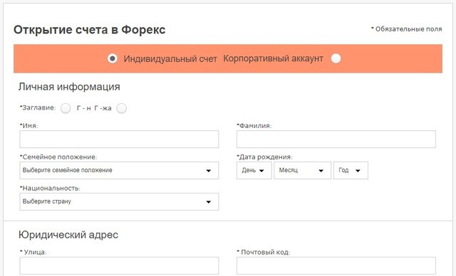 - Заполнение формы c личной информацией о месте проживания, занятости, наличии капитала и пр.