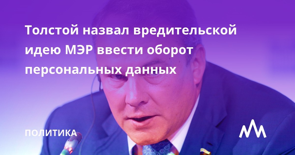 Вице-спикер Госдумы Петр Толстой (фракция «Единая Россия») назвал «откровенно вредительской» идею поставить на поток оборот персональных данных. Об этом он заявил, комментируя разработанный Минэкономразвития России проект федерального закона, по которому операторы связи получат возможность передавать банкам и туристическим сервисам ряд данных о клиентах с их согласия.