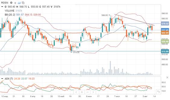 Акции «Роснефти» упали на 1%, отстав от рынка в целом, после того, как компания сообщила о пятикратном увеличении чистой прибыли по сравнению с аналогичным периодом прошлого года на фоне более высоких цен на нефть.