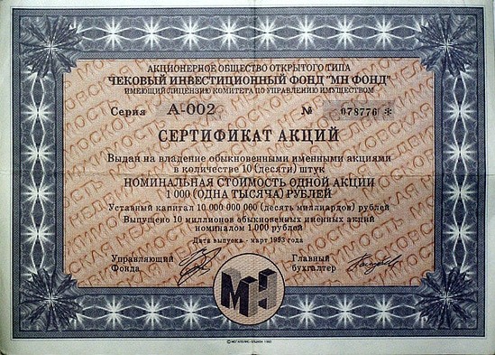 ЧИФ это чековый инвестиционный фонд и их берет начало в 1990-х, называемых теперь «лихими». Но при всех громадных проблемах перехода к рыночной экономике 1990-е это время появления новых инвестиционных инструментов, из которых гражданам СССР по сути были доступны лишь насильно навязываемые облигации. Ярким маркером стали и приватизационные чеки, называемые в народе ваучерами. Каждый гражданин получал такой чек, имевший номинальную стоимость 10 тысяч рублей.