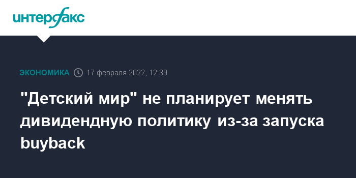 ПАО «Детский мир» не планирует менять дивидендную политику из-за запуска buyback, сообщила «Интерфаксу» гендиректор «Детского мира» Мария Давыдова.