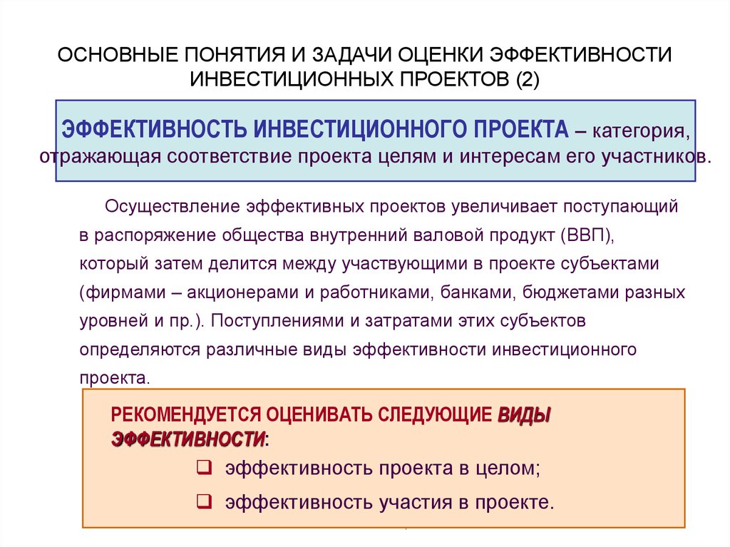 Что общепринято понимать под эффективностью инвестиционного проекта? Это: