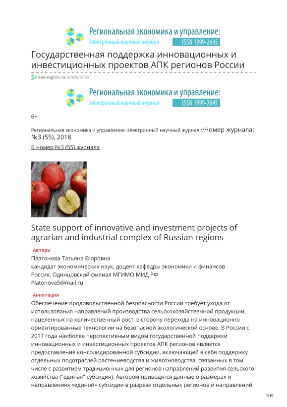 регион, региональные инвестиционные проекты, региональный инвестиционный фонд, инвестиционная деятельность, государственная поддержка.