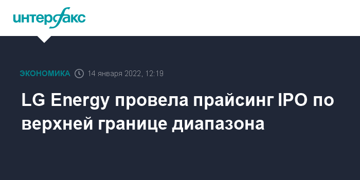 Южнокорейский производитель аккумуляторов для электрокаров LG Energy Solution Ltd. провел прайсинг IPO по верхней границе ценового диапазона — 300 тыс. южнокорейских вон ($252,79).