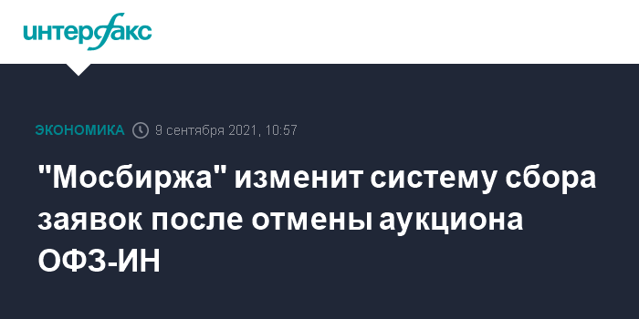 «Московская биржа» по просьбе Минфина России планирует изменить систему сбора заявок на аукционах ОФЗ после несостоявшегося в среду размещения ОФЗ-ИН, чтобы участникам при подаче заявки на аукцион отображалась не только номинальная стоимость облигаций на дату проведения аукциона, но и размер обязательств, сообщили «Интерфаксу» в пресс-службе биржи.