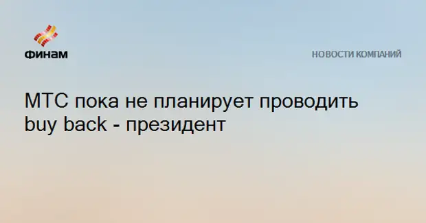 ПАО «Мобильные Телесистемы» (мобильный оператор МТС) пока не планирует проводить обратный выкуп акций, заявил президент компании Вячеслав Николаев.