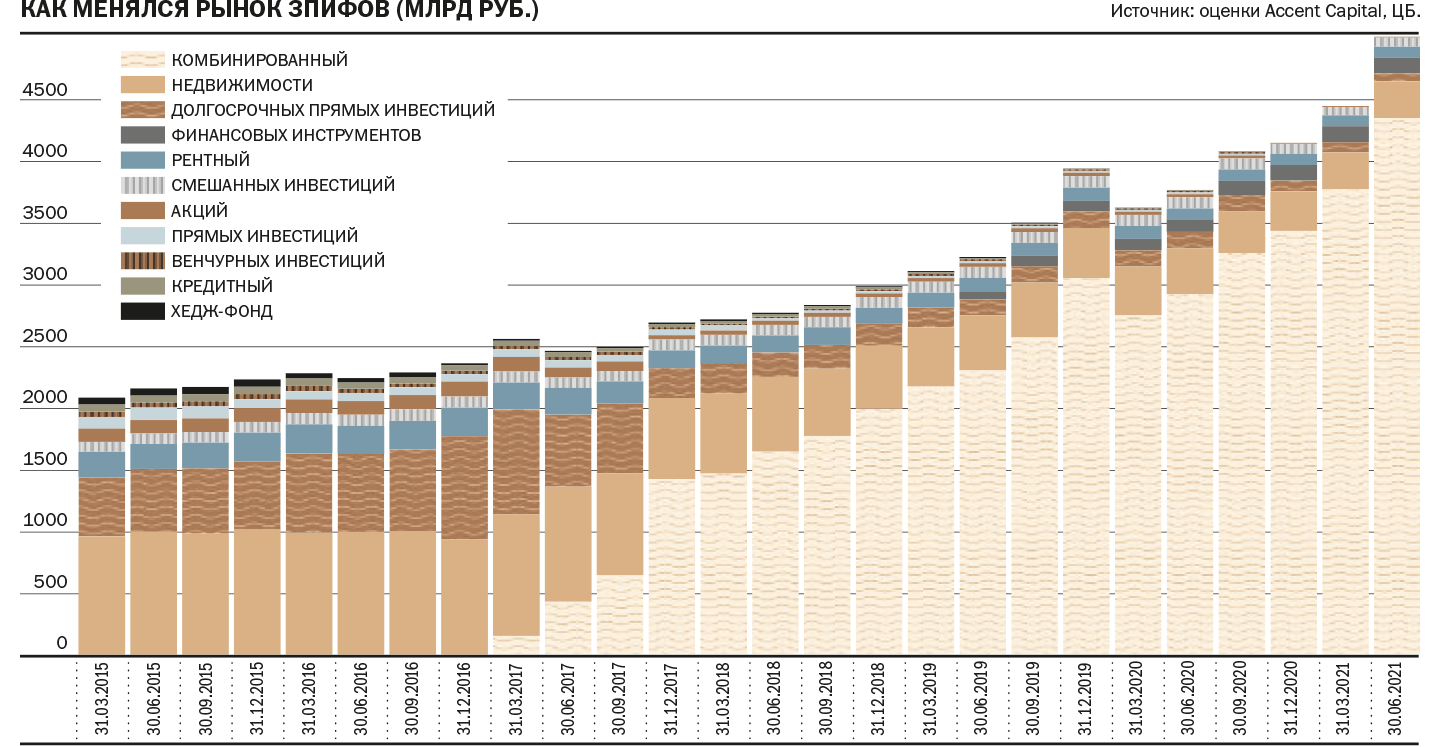 По оценкам Accent Capital, за три квартала активы рыночных ЗПИФов коммерческой недвижимости выросли на 9,6 млрд, до 33,7 млрд руб. Это сопоставимо с ростом за весь 2020 год. В качестве объектов инвестирования розничных фондов коммерческой недвижимости выступает в первую очередь недвижимость торговая и складская. По оценкам Accent Capital, объем логистической недвижимости в таких ЗПИФах вырос по итогам девяти месяцев на 7,4 млрд руб., до 15,2 млрд руб., торговая недвижимость прибавила только 2,7 млрд руб., до 15,8 млрд руб. Объем офисной недвижимости снизился с 3,2 млрд руб. до 2,5 млрд руб., гостиничный же бизнес до сих пор не представлен.