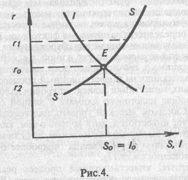 Сбережения — это предложение денег, инвестиции — это спрос на деньги. Отсюда, равновесие денежного рынка — это условие равенства сбережений инвестициям. В свою очередь, равновесие денежного рынка обеспечивается гибкостью процентных ставок. Если сбережения (предложение денег) превысят инвестиционный спрос, то процентная ставка упадет, инвестиции увеличатся, на рынке будет восстановлено равновесие. Если, наоборот, инвестиционный спрос (спрос на деньги) окажется больше сбережений и превысит предложение, то процентная ставка повысится, и начнут увеличиваться сбережения.
