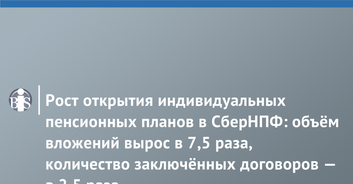 Рост открытия индивидуальных пенсионных планов в СберНПФ: объём вложений вырос в 7,5 раза, количество заключённых договоров — в 2,5 раза
