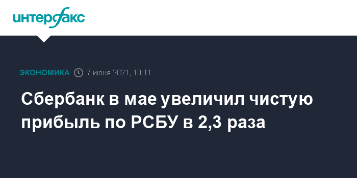 Сбербанк России в мае 2021 года увеличил чистую прибыль по РСБУ в 2,3 раза – до 101,9 млрд рублей по сравнению с 45,1 млрд рублей чистой прибыли годом ранее, следует из сообщения банка.