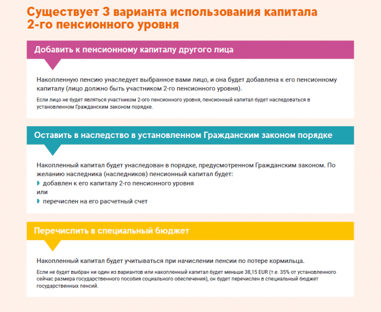 Взносы не существуют в виде отдельных денежных накоплений, они представлены только в виде баллов. Когда гражданин выходит на пенсию, он начинает получать выплаты из пенсионного фонда. Ежемесячно из общего бюджета фонда выделяется сумма, размер которой формируется из количества пенсионных баллов. Если гражданин умирает, то баллы аннулируются и выплаты прекращаются.